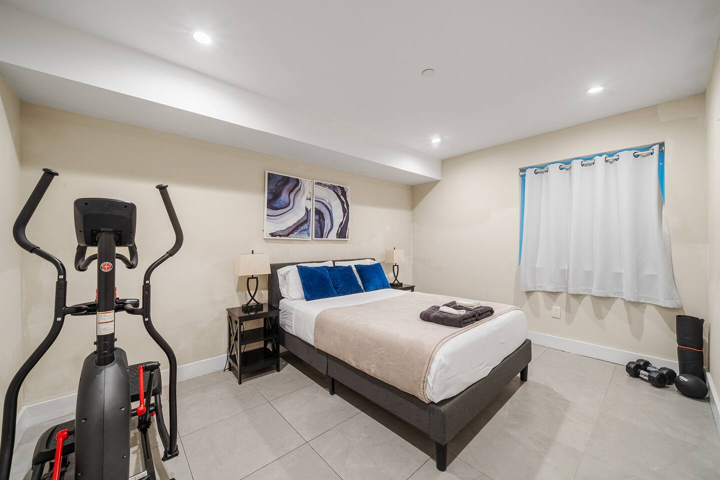 This 4-bedroom, 3-bathroom house offers a luxurious and versatile living experience with ample space and a variety of high-end features. Inside, you'll find a spacious layout, including a modern kitchen with updated appliances, a comfortable living room, and a dining area. The four well-appointed bedrooms provide plenty of space for relaxation, with the master suite often featuring an en-suite bathroom for added privacy and comfort. The three full bathrooms are stylishly designed with modern fixtures, providing both convenience and luxury. The house is ideal for entertaining, thanks to its well-thought-out design and outdoor spaces. One of the standout features is the rooftop, which is equipped with a jacuzzi perfect for unwinding while taking in panoramic views. Additionally, the roof space includes wall games, such as a dart board connect four Scrabble & tic tac toe offering entertainment for guests and family alike. There’s also dedicated exercise equipment for those who prefer a home workout, ensuring that fitness is a central part of the lifestyle in this home. The rooftop area serves as a peaceful retreat, with a blend of leisure and activity, offering the ultimate space to relax or stay active.